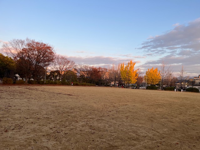 早朝から、日ごろ練習で使わせていただく上桂公園のグランドの周りの落ち葉清掃へ🧹🍂