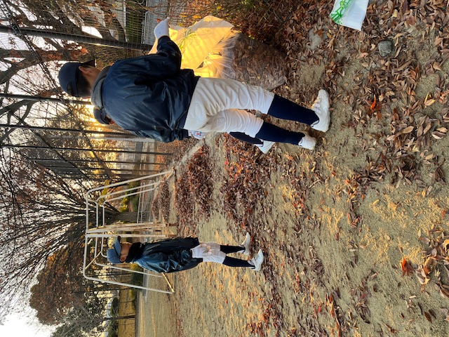 野球ができる大きなグランドを使わせもらえることに感謝して落ち葉を集めました♪♪♪