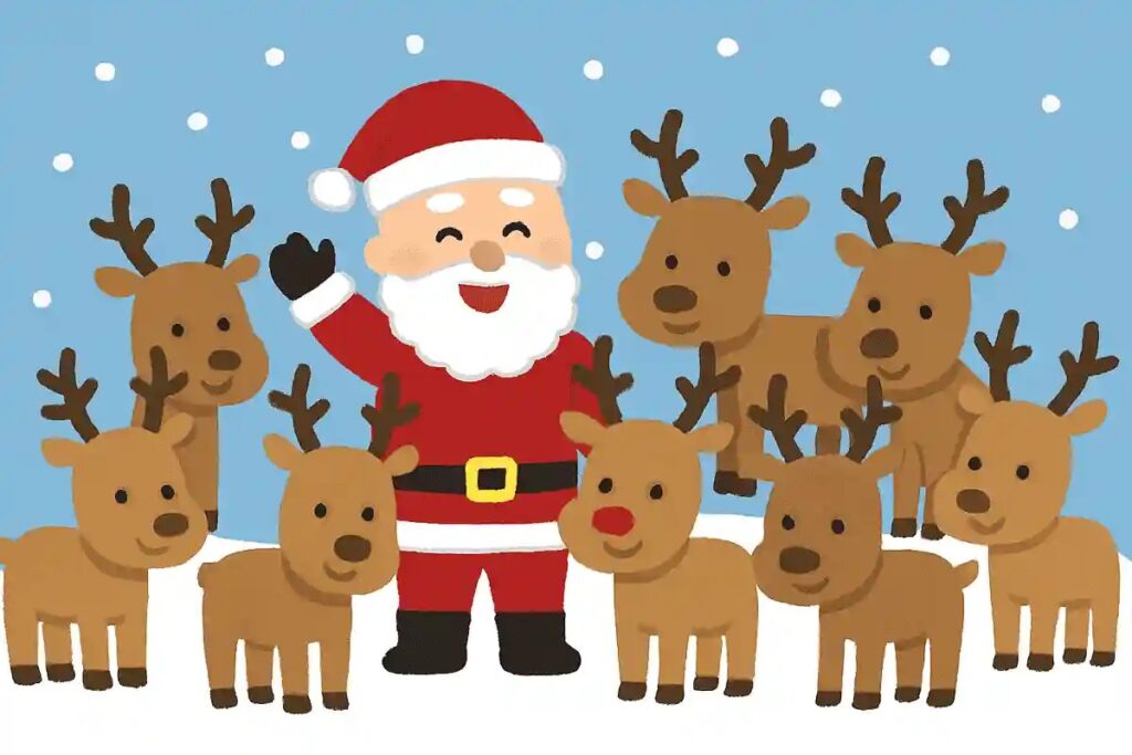 トナカイは8頭いると言われており、「ダッシャー」「ダンサー」「プランサー」などの名が付いていますよ。