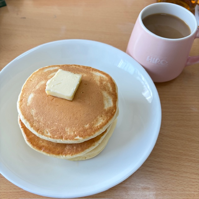 ホットケーキを焼き、3段重ねてバターたっぷり