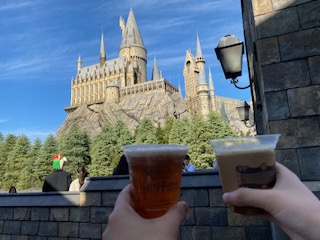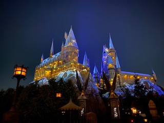 ハリー・ポッターエリアではクリスマスイベントが行われており、ライトアップされたホグワーツ城がとても綺麗でした。