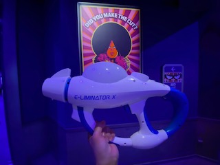 動く歩道に乗って立ったまま進むシューティング形式で、スマホと連動し電気銃でミニオンやボスを倒してポイントを競い合うのがとても楽しかったです。