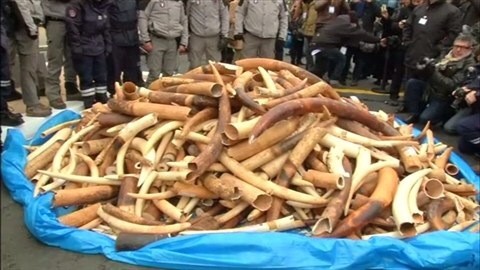 パリの観光名所エッフェル塔の前で、トラックの中から出されたのは押収された象牙です。象牙は野生動物の保護のため取引が禁止されていますが、密猟、密輸はあとを絶たず、シャルルドゴール空港だけで20年間で1万5000個の密輸品が押収されています。