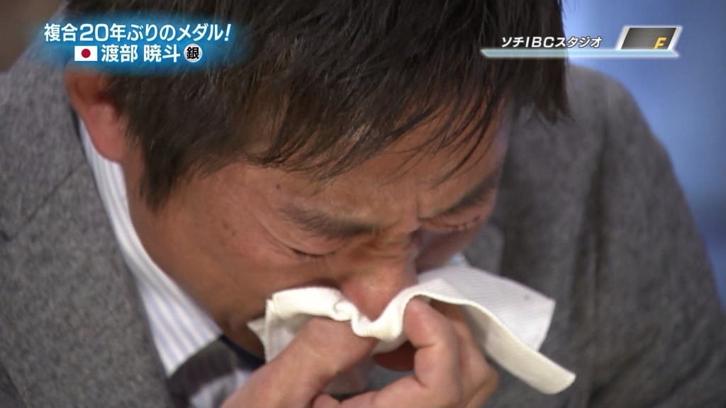 しかし、一昨日のノルディック複合の渡部選手のレース後のスタジオ生放送中でのあの号泣。