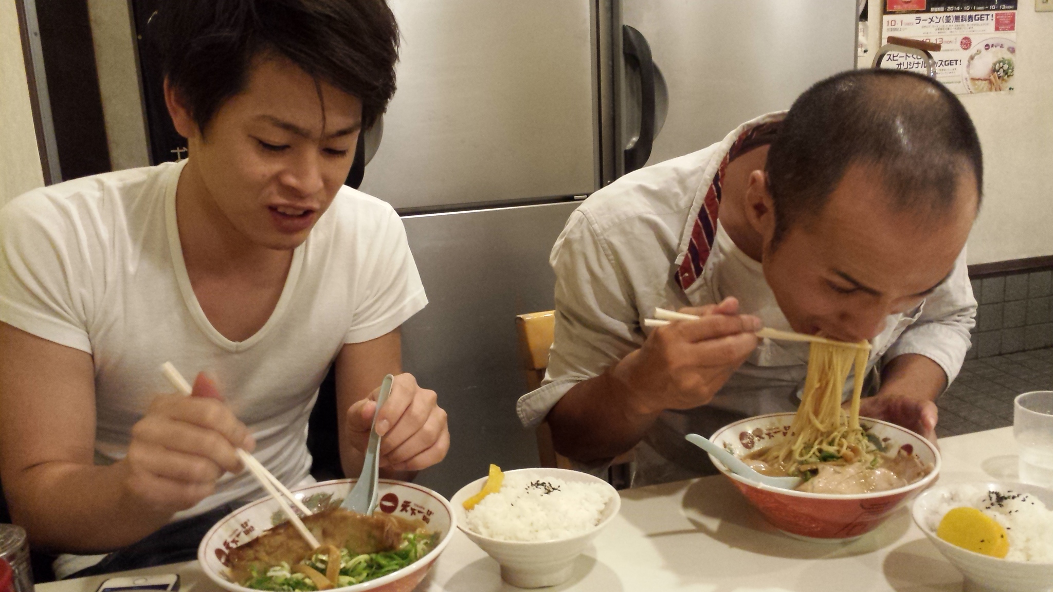 天下一品のこってりを食べる3人。