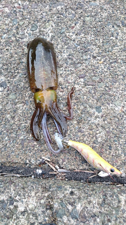 このイカちゃんよく見ると、僕の釣りの腕にお手上げ状態ですね![]()