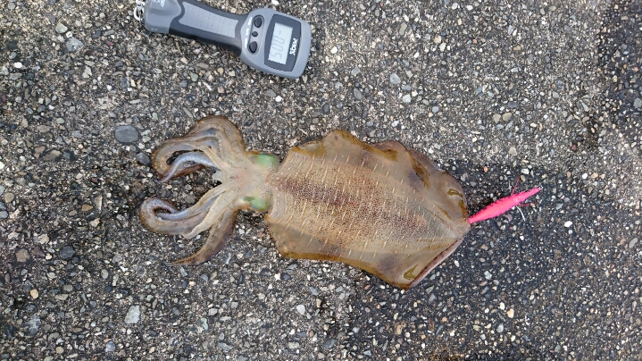 そしてつり上げると、モンスターアオリイカが(^_-)