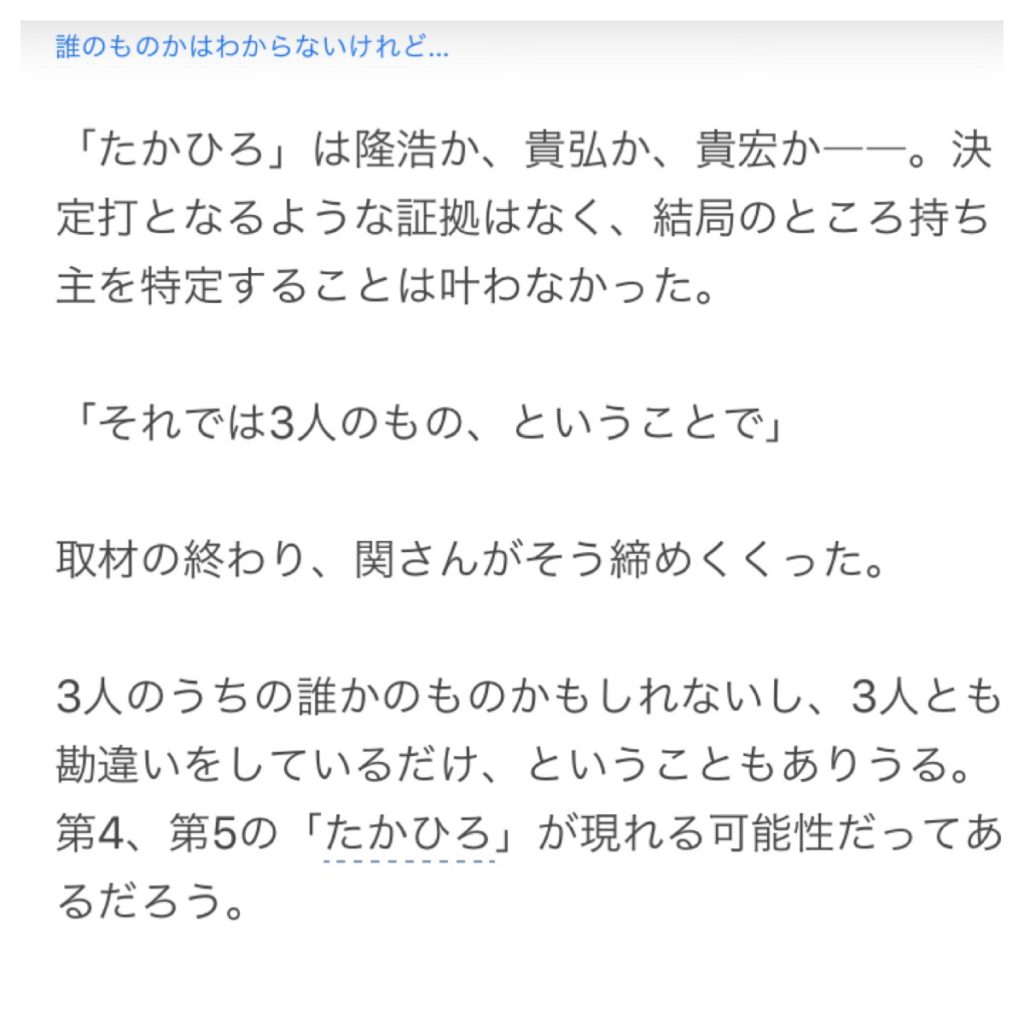 隆浩か貴弘か貴宏か、誰の物か。