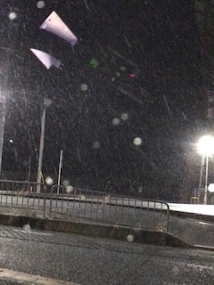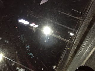 夜で分かりにくいですが降ってます