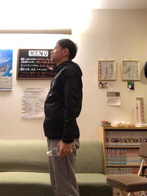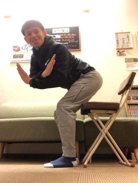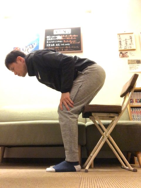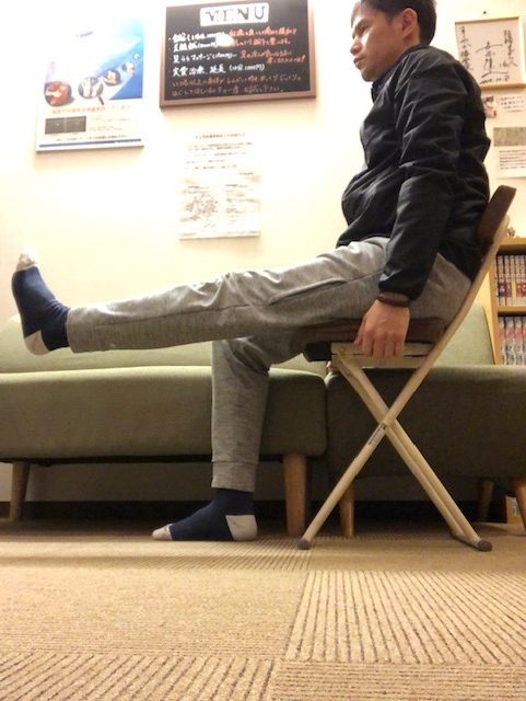 浅く腰をかけそのまま真っ直ぐ立ち上がります。