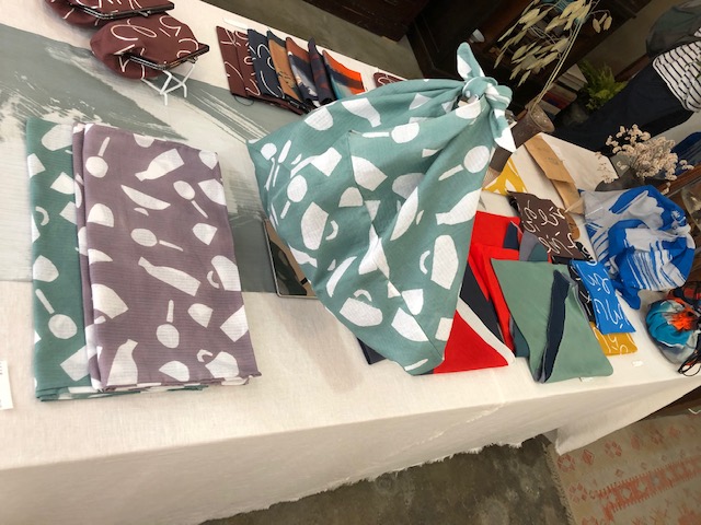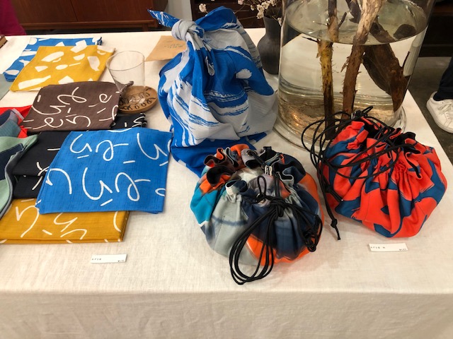 手で染め上げたハンカチやカバン、ポーチ、手ぬぐいなどなど、、。