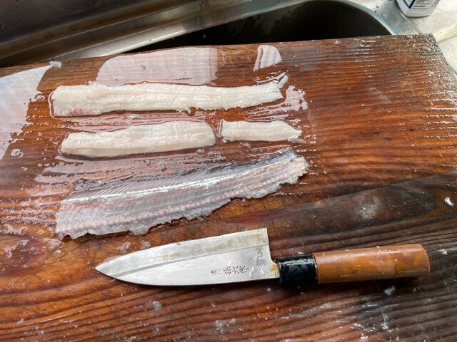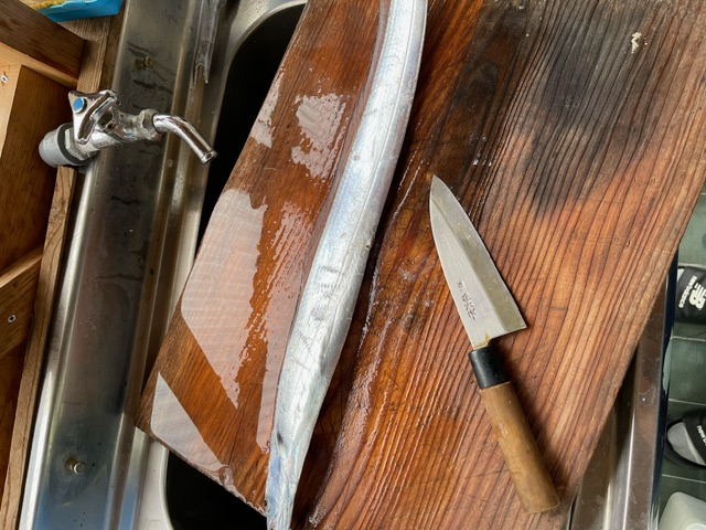 太刀魚は初めて捌くので携帯で調べながら