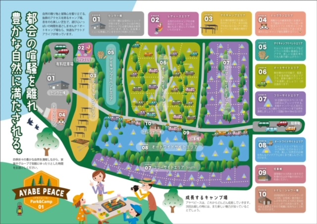 キャンプ場の名前がAYABE PEACE Park&Camp