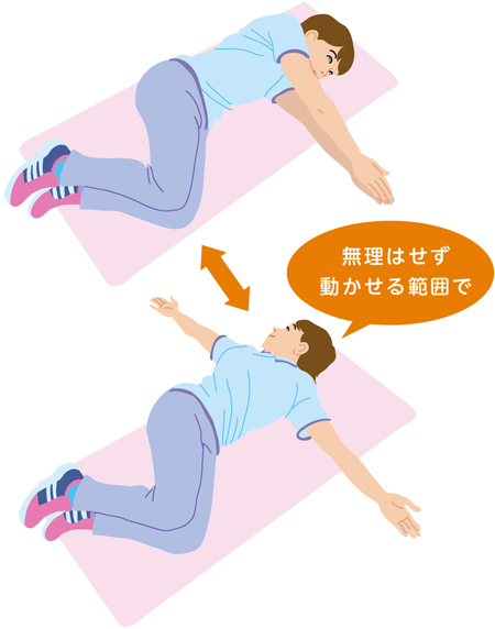 腰に手を当てて体を逸らしてみてください。