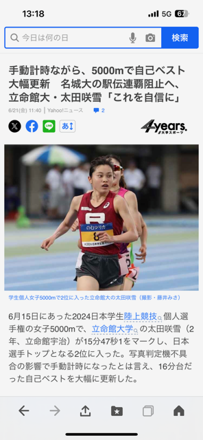 先日の全日本インカレの女子5000メートルで当院の患者さんが二位!!
