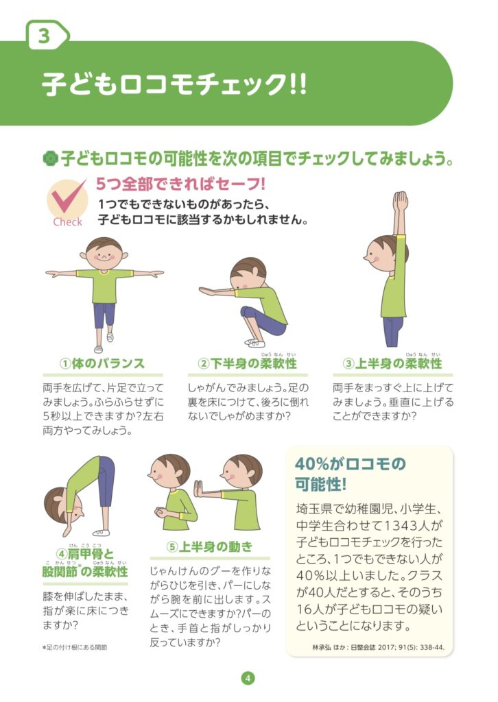 ロコモのチェックを行い、お子様の状態を知る機会を作りましょう!