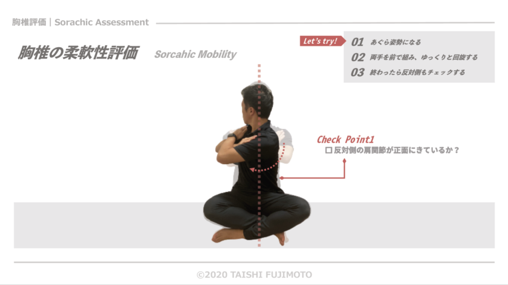 実際、どれぐらい胸椎を捻れているかチェックしてみましょう!