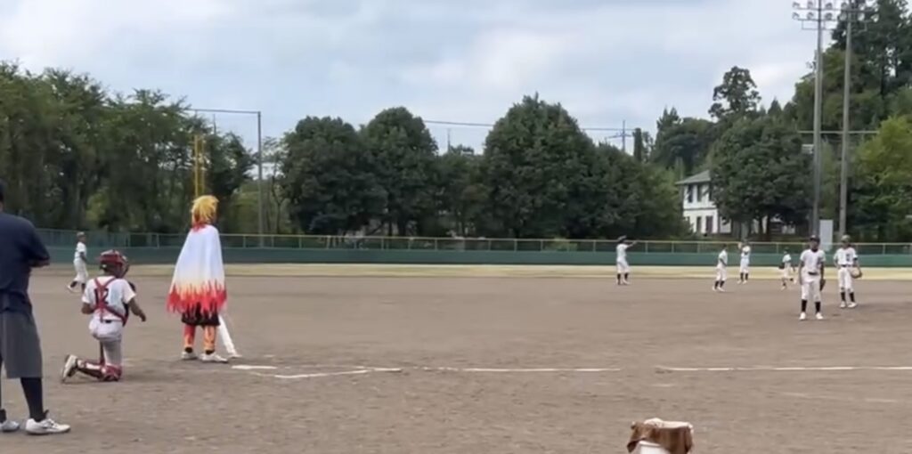 何年か前も息子1が少年野球をしていた時の親子対決ではドラゴンボールの孫悟空の格好(コスプレ)をして打席に入りました。