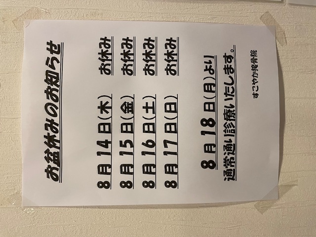 今年のお盆休みは8/14日(木)~8/17(日)までお休みをいただきます。