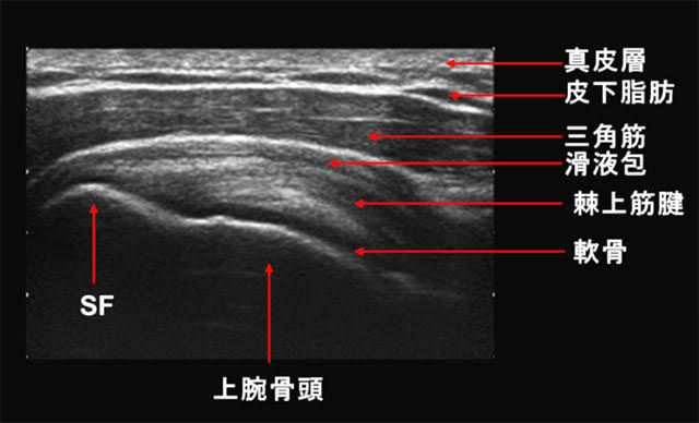 棘上筋の断裂をエコーで撮ったものです。