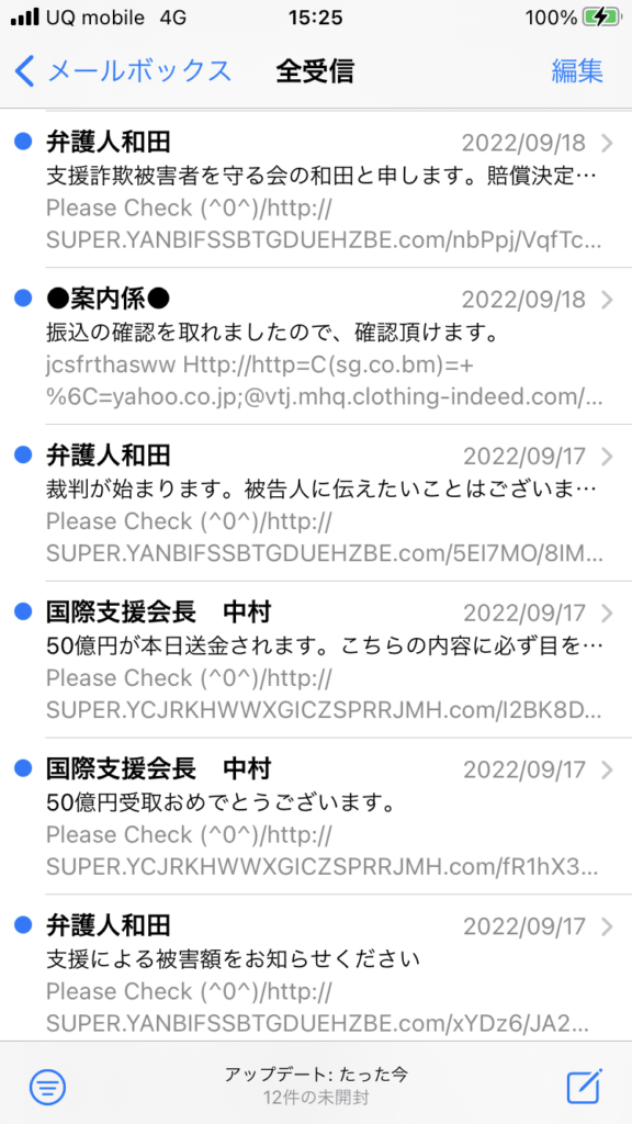 しかし、こんな気持ちの良い日々にでも、僕の携帯電話のメールには訳の分からないメールがたくさん送られてきます。