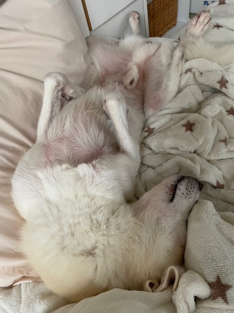 布団も白っぽいのでどれが布団でどこが犬なのかわからないですよね笑