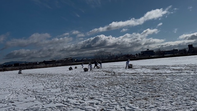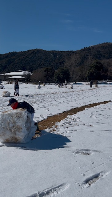 代わりに子供たちは足腰の鍛錬というこで大雪ダルマ作り。
