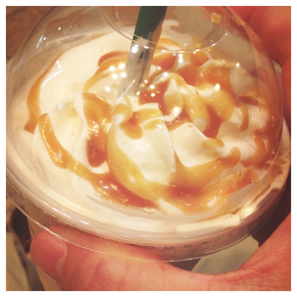 スタバのキャラメルフラペチーノ!こないだ初めて1人でスタバ行って、商品の受け取り方がわからずテンパりましたσ(^_^;)