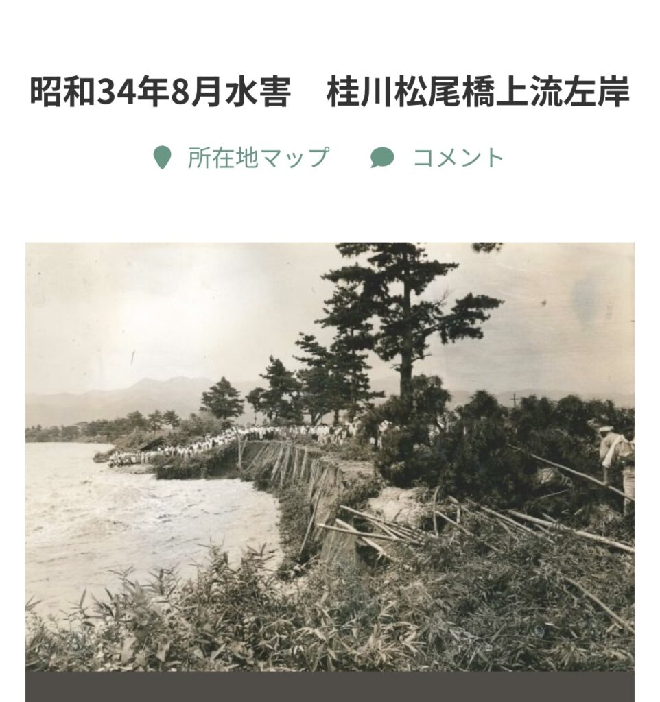 これは昔々桂川が水害で崩れた写真。