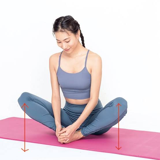 - 両膝を軽く曲げながら背筋を伸ばし、かかととお尻で体を支えることを意識しながら、足を左右に大きく開いていく