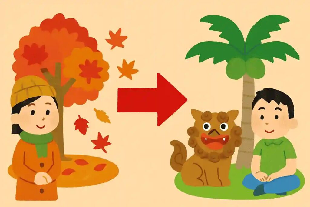 代わりに南国特有の花や常緑樹が季節を彩り、沖縄ならではの自然の美しさを感じさせてくれます。