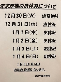 良い新年を迎えていただくために今日も全力で治療していきますのでお待ちしておりますね