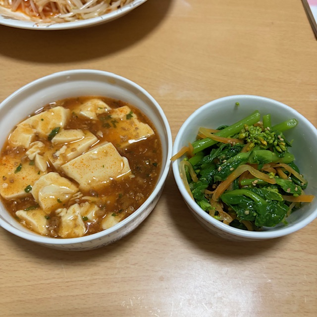 麻婆豆腐は簡単に作れる素をゲットしたのでそれを使い、豆腐を入れるだけで簡単に作りました!